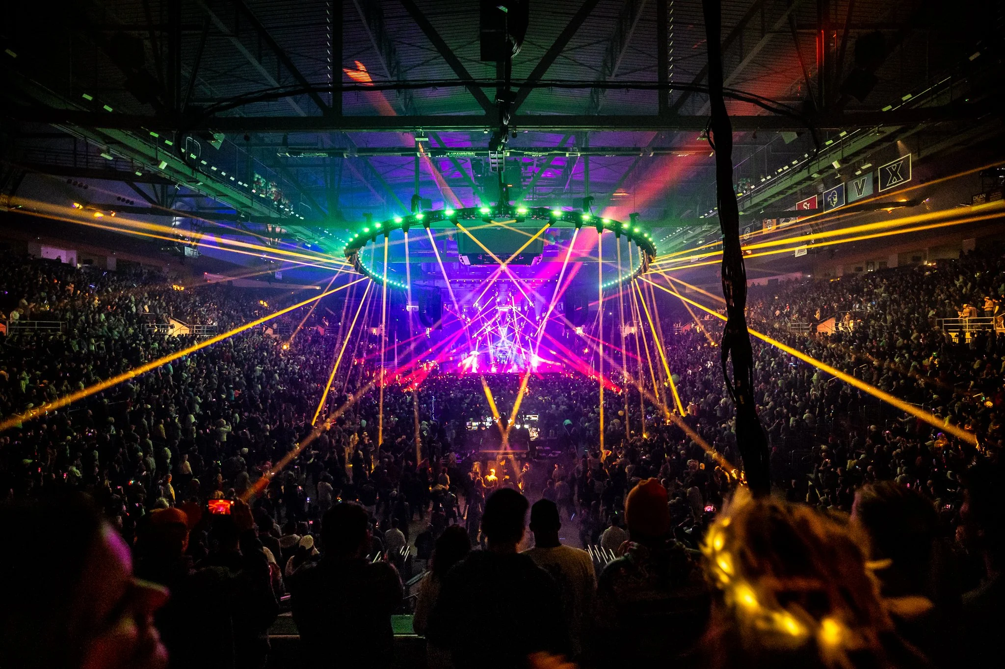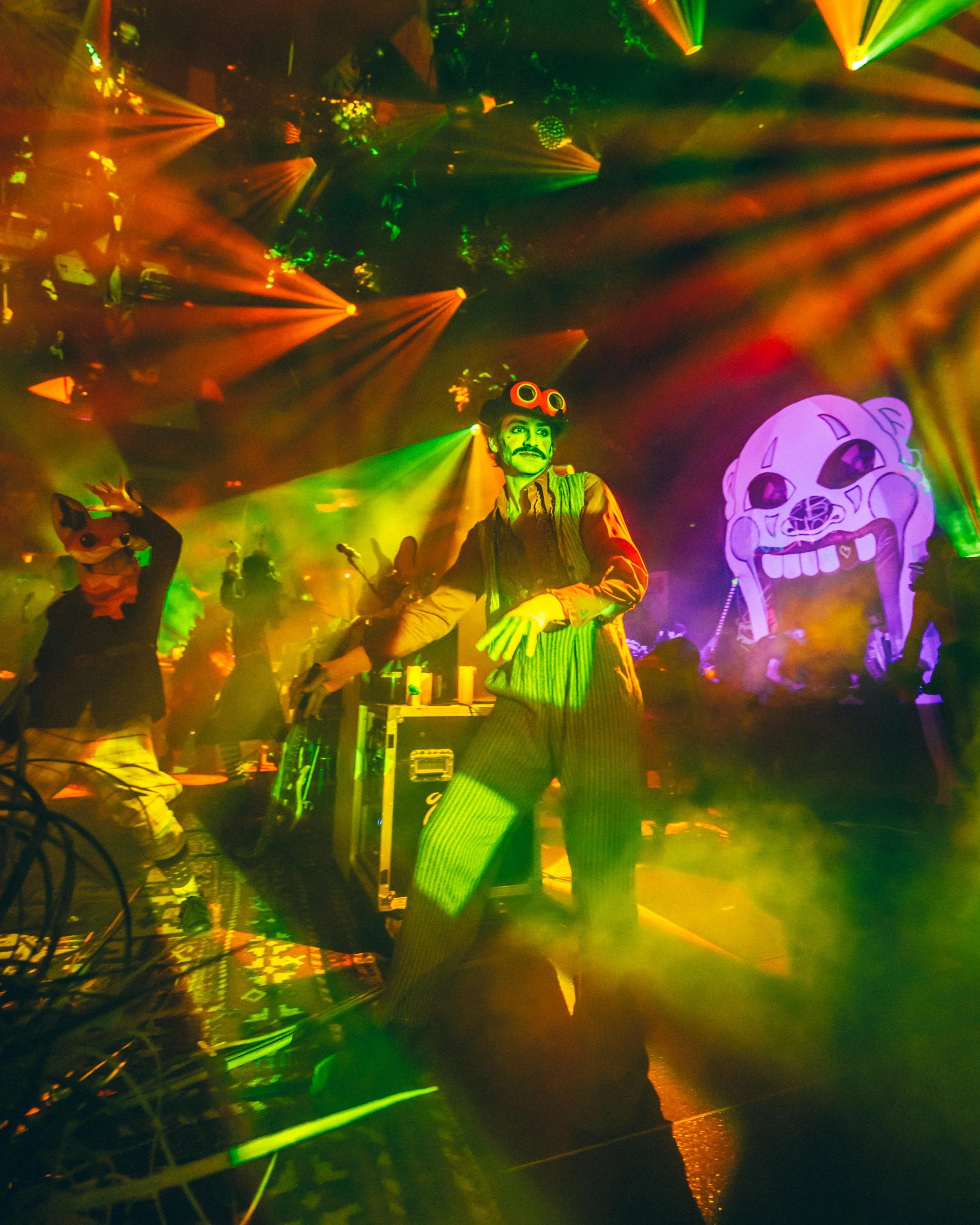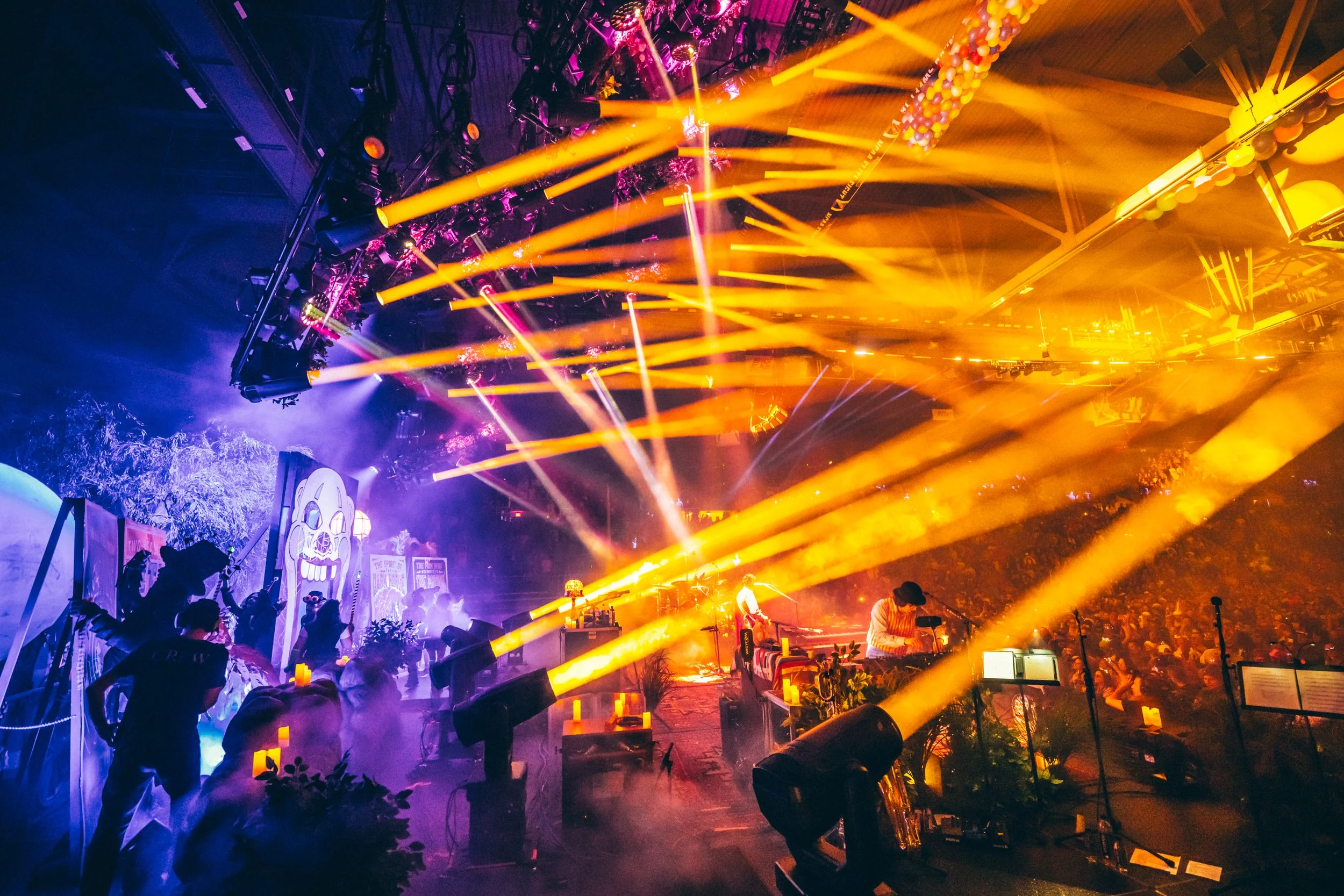 Goose, evolving the annual tradition into a sprawling multi-sensory narrative titled "Show Upon Time". Moving beyond traditional production, the creative team, led by Goose’s Creative Director Will Thresher, META’s Justin Bolognino as Experience Director, and Rüts as Creative Producer, treated Providence’s Amica Mutual Pavilion as a living canvas for world-building, weaving the band’s improvisational language into signature "sonic immersions". The result was a theatrical environment where music didn't just play to the audience—it lived among them through a "Phantom Menagerie" of oversized animal puppets and surrealist performers.